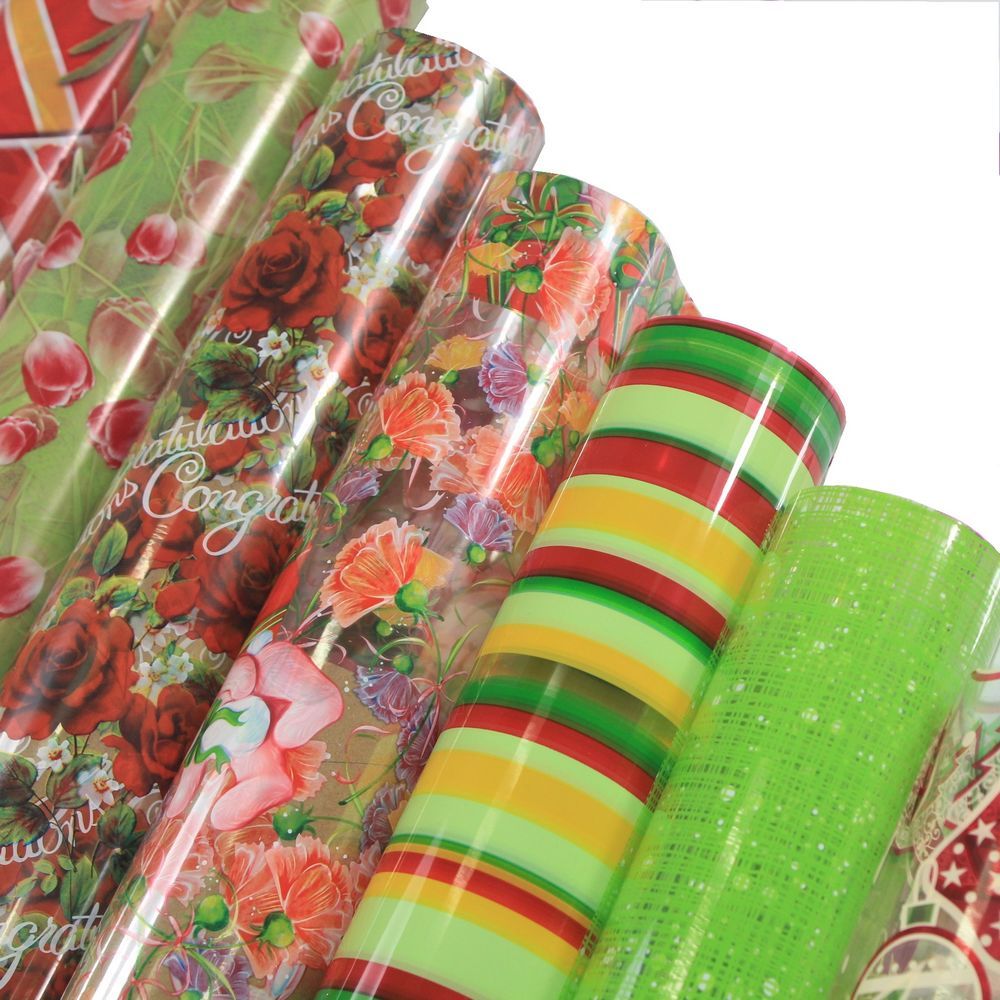 Bopp Cellophane flower wrapping paper is available in flat sheets and on rolls.